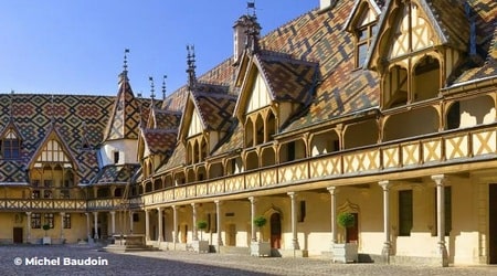 Fondation hospitalière du Moyen Âge, les Hospices de Beaune sont un monument incomparable et grandiose avec son architecture gothique flamboyante, ses toits polychromes et son exceptionnel domaine viticole.